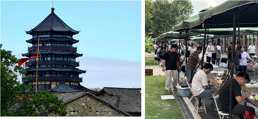 Following a night of rest, on the early morning of October 5, the group arrived at Taoyangli Scenic Area with renewed energy. This area was once the core area of the porcelain industry in history, offering a journey back to the ancient past. Wandering through the old town's lanes, they found paths lined with kiln bricks, stone carvings that exude an antique charm, and weathered kiln houses, each brick and tile whispering tales of bygone years.