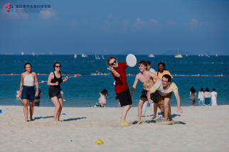 Along with the beautiful afternoon sunshine andrefreshingsea breeze, the students arrived at the picturesque Judiaosha Beach. The golden beach and the blue ocean instantly ignited their vitality. Before the exercise games started, the coach organized an ice-breaking activity, where students got toset up their own teams for team culture demonstration,buildingtheir team spiritin the process.