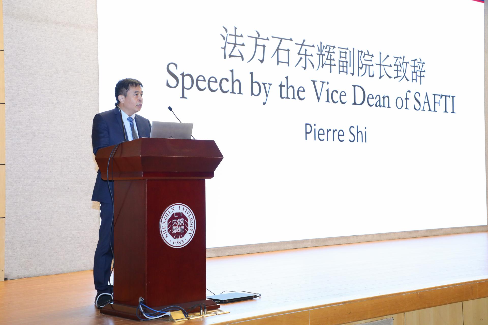 法方代表石东辉副院长也在会上致辞,他提醒2022级新生注重学习的同时也要强健体魄,成长过程中的吃亏和吃苦有助于铸就坚定的意志。教师代表SUBENKO, Ricky则生动地介绍了学院的课程设置体系与师资力量,引发了现场新生们的广泛关注。
