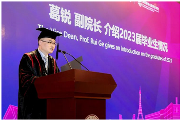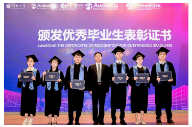 张凯院长为毕业生们送上精彩祝辞,他说,学院在建立之初,就确立了以“金融科技学科”为一体,以“校企合作创新+中外合作国际化”为两翼的办学方针,打造了创新型的金融科技人才培养体系,与南特高商一道,联手微众银行、平安银行等金融科技企业深度合作,为学生提供金融科技最前沿的知识与教育。今天,硕士项目的第二届学生正式毕业了。希望同学们能够牢记母校的“自立、自律、自强”的校训,严格要求自己;继承学院的优良传统,发扬学院“金融先锋、科技向善“的精神品格,做一个有理想、有本领、有担当、有情怀的新时代青年。