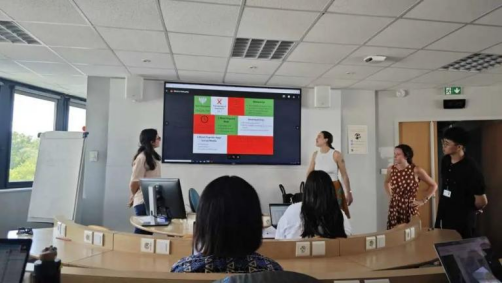 课堂很轻松活跃,外国老师和学生都很乐于和我们讨论问题。让我体会最深的是老师布置的课堂作业和国内有很大的区别。老师布置任务后,按小组讨论并上台展示成果。国外同学们在Presentation阶段体现出来的自信大方,非常值得我们学习。通过交流,我也深感自豪,因为中国在数字经济上的先进技术让外国友人们感觉很震撼。