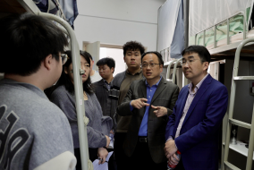 学院领导刘海山、陈海强、古维、娄卓男及辅导员一行深入学生宿舍区,先后走访了聚翰斋、乔相阁、红豆斋等宿舍。在走访过程中,他们细心询问同学们的假期生活,关注大家新学期学习状态,耐心叮嘱大家注意宿舍内务卫生和日常用电安全,并特别提醒同学们要劳逸结合,关注身心健康。