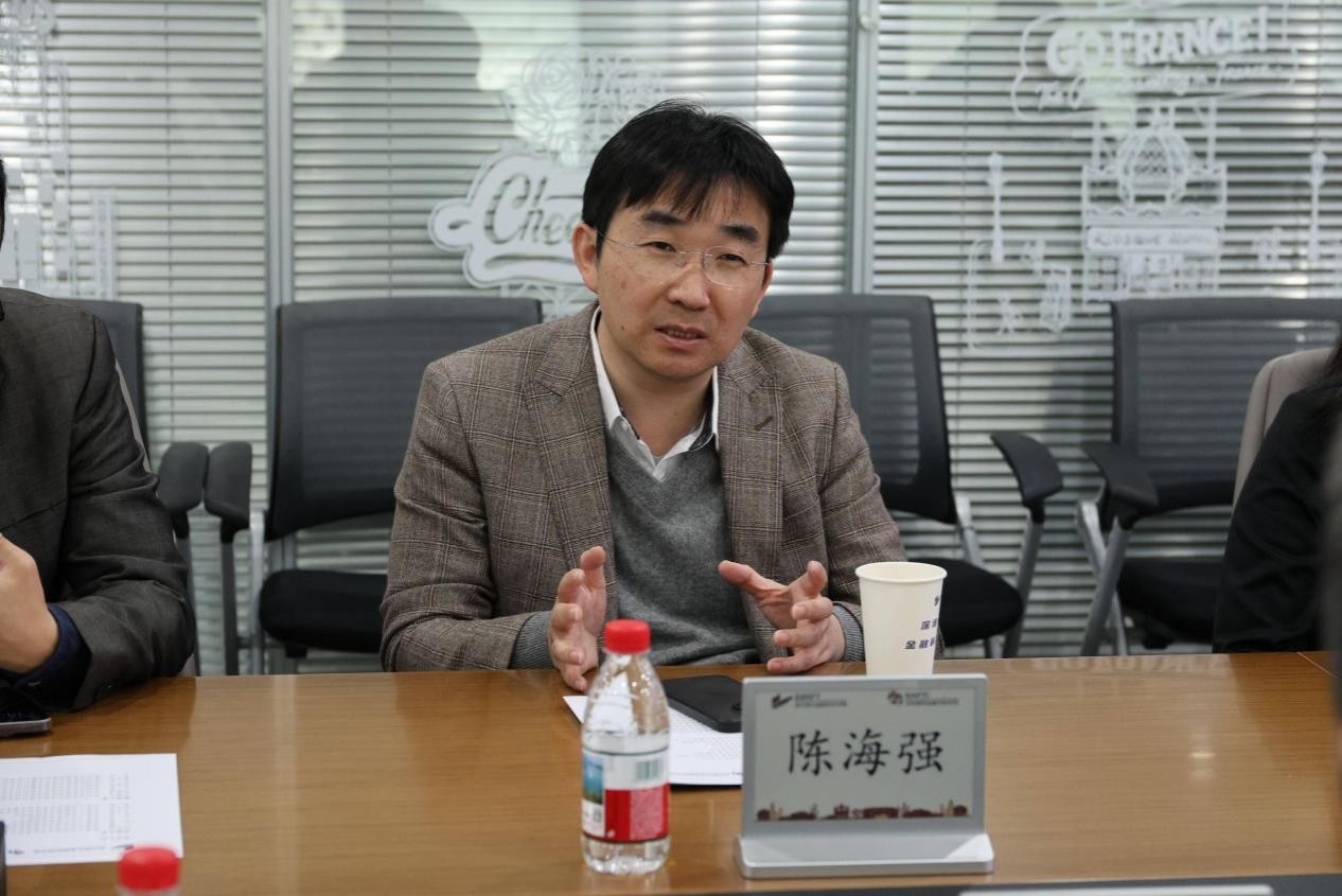 陈海强院长对于曦一行表示欢迎,并介绍了深圳大学深圳南特金融科技学院情况。学院始终以人才培养为核心,将硕士项目打造为教学改革的示范点。“我们构建了‘六位一体’育人体系,将课堂学习、企业实践、国际视野与文化融合有机整合。”项目依托深圳大学与法国南特高等商学院深度合作,课程体系聚焦数据科学、人工智能与金融场景的深度融合,精准培养数据分析、系统架构等方向的应用型人才,设计注重实践与前沿技术的有机融合,并通过校企双导师制和过程化评价机制,实现人才培养与行业需求的精准对接。