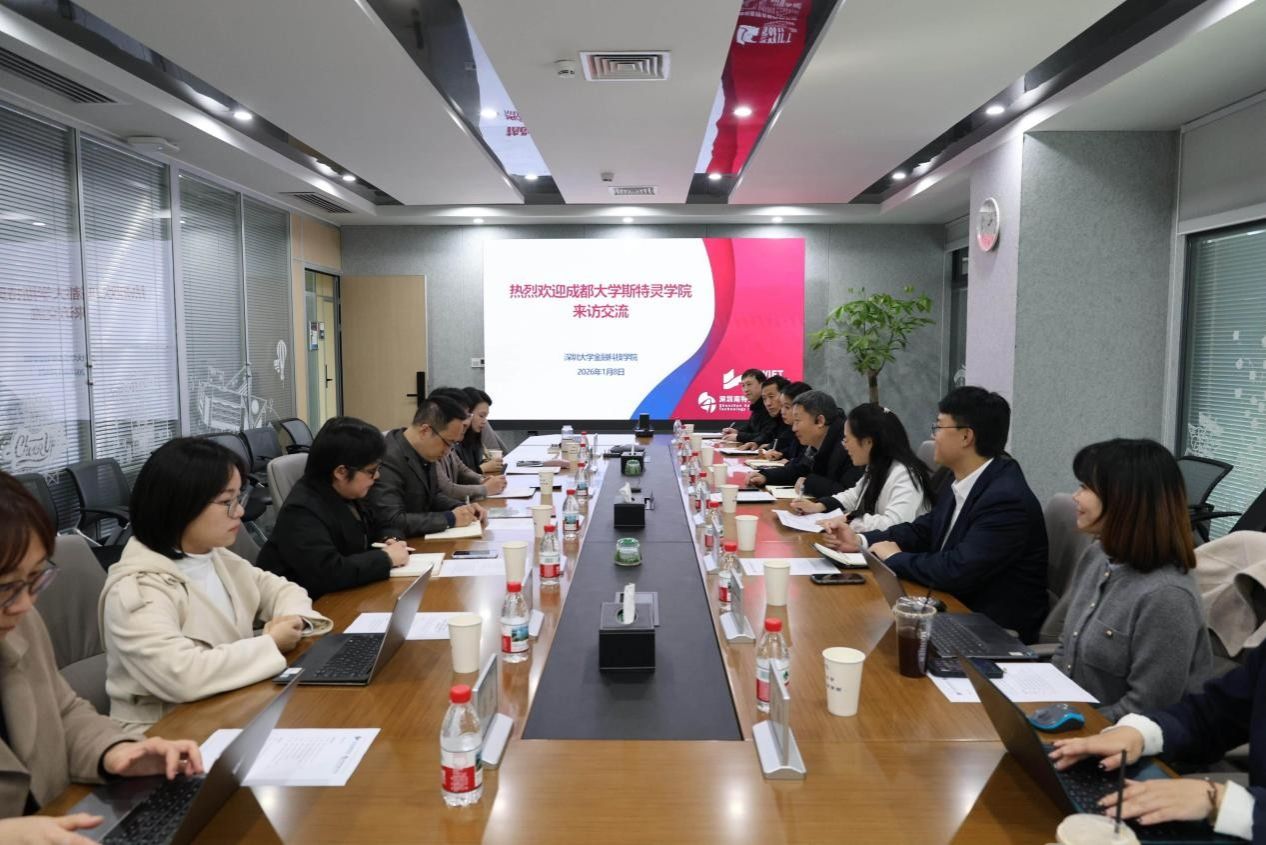 1月8日下午,成都大学斯特灵学院党总支书记刘亚玲、院长于曦一行8人来访调研。深圳大学深圳南特金融科技学院党委书记刘海山主持,双方在粤海校区汇星楼565会议室展开座谈。