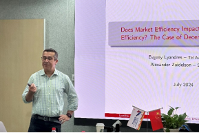 本次讲座中,Evgeny Lyandres教授介绍了自己近期在区块链领域的重要研究成果。主要内容为:We examine the effect of market efficiency on the efficiency of capital allocation in the setting of decentralized exchanges of crypto assets. Utilizing data on nearly 100 million trades in concentrated liquidity pools on two leading blockchains, we construct a highly granular, capital-market-based measure of capital allocation efficiency. We also design and implement a method of identifying market-efficiency-restoring arbitrage transactions among all blockchain transactions and construct arbitrage-based granular measures of market efficiency. We find that market efficiency has positive, economically and statistically significant, and causal impact on capital allocation efficiency..