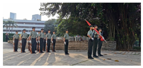 在热烈的掌声中,升旗仪式圆满结束,全体师生有序离场。