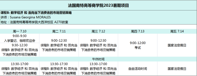 法国南特高等商学院同时拥有EQUIS、AACSB 及 AMBA 三项全球权威商学院认证,是法国最早获得国际权威商学院认证的精英院校。经过两天的安置与适应,同学们正式开始了在法国南特高等商学院的课程学习。在7月10日至13日期间的学习中,同学们积极参与,认真完成小组作业,与来自不同国家的同学们在思维的碰撞中交换真知灼见、激发创新火花,充分展现深圳南特金融科技学院学子的青春风采。
