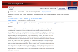 近日,我院石洋副教授在市场营销学领域的国际顶级期刊《Journal of Marketing Research》上发表论文“When Words Meet Visuals: How Content Composition Drives Social Media Engagement for Marketer-Generated Content”。